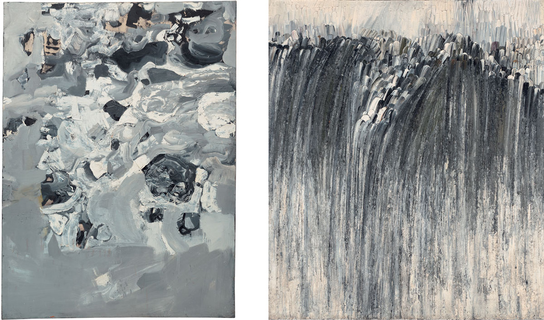 Left: Jay DeFeo, Untitled (Mountain series – Everest), 1955. © 2016 The Jay DeFeo Foundation/Artists Rights Society (ARS), New York; Right: Jay DeFeo, Origin, 1956. © 2016 The Jay DeFeo Foundation/Artists Rights Society (ARS), New York. Images courtesy of The Jay DeFeo Foundation.