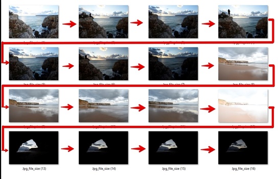 The reduction of data happens by compressing an image. When we write “xxxxxxxxxxxxx” we store twelve letters on a sheet of paper. We could also compress it to “12x” for only one-fourth of the space. Image compression is much more complicated but relies on the same principles: You summarize data to save memory space. When saving and opening a JPEG file many times in a row, compression will ruin your image.