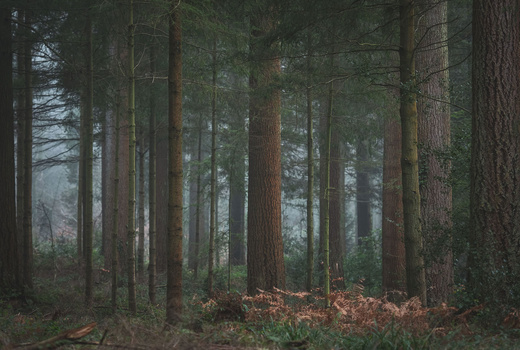 Next, if we look below, there's a huge out-of-focus gap at the bottom of the frame full of green and brown ferns, and although it adds a nice bit of texture, it isn't actually doing much to the scene. We can see the forest floor beneath the trees, and arguably, that's all we need to see. It feels a bit like dead space, and so, I'm inclined to cut it out through the use of a zoom.